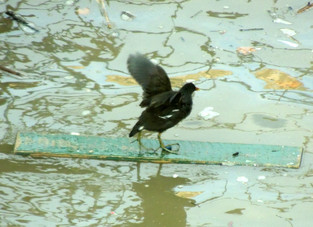 These birds can be quite vicious defending their territory, but I imagine it's not breeding season, so I just see this one floating around--or floating on a plank to save energy, apparently.